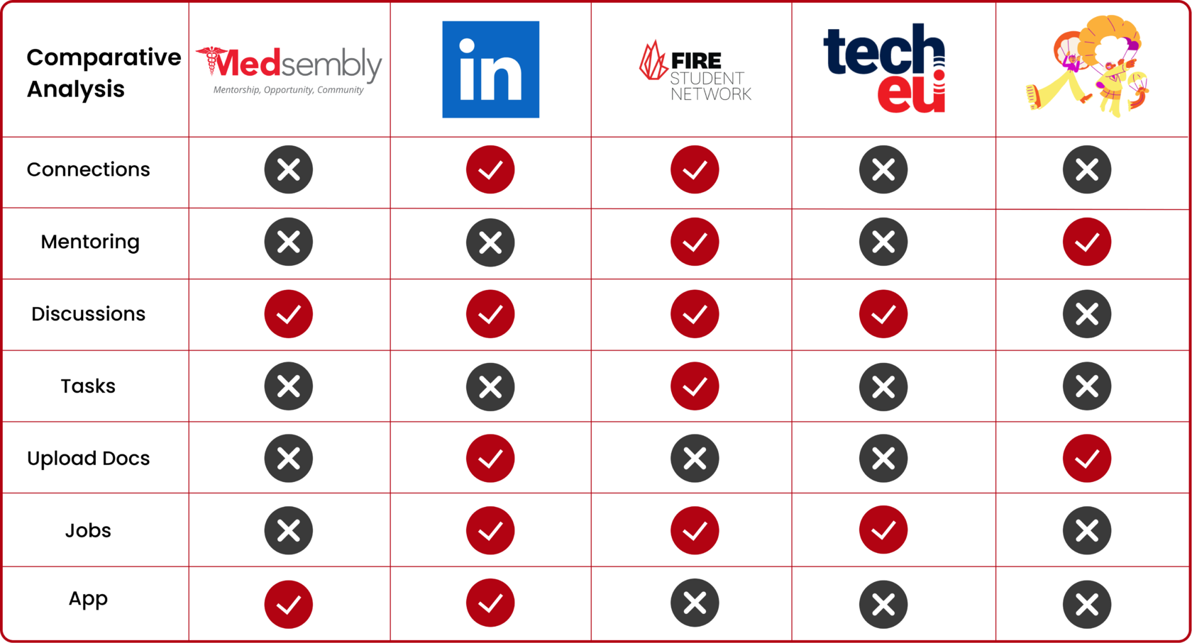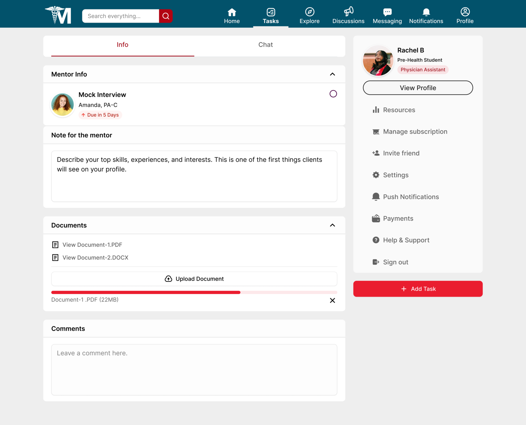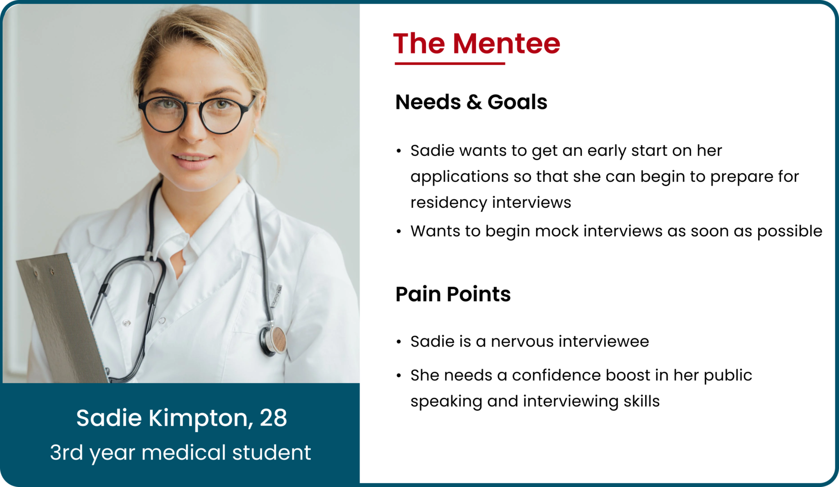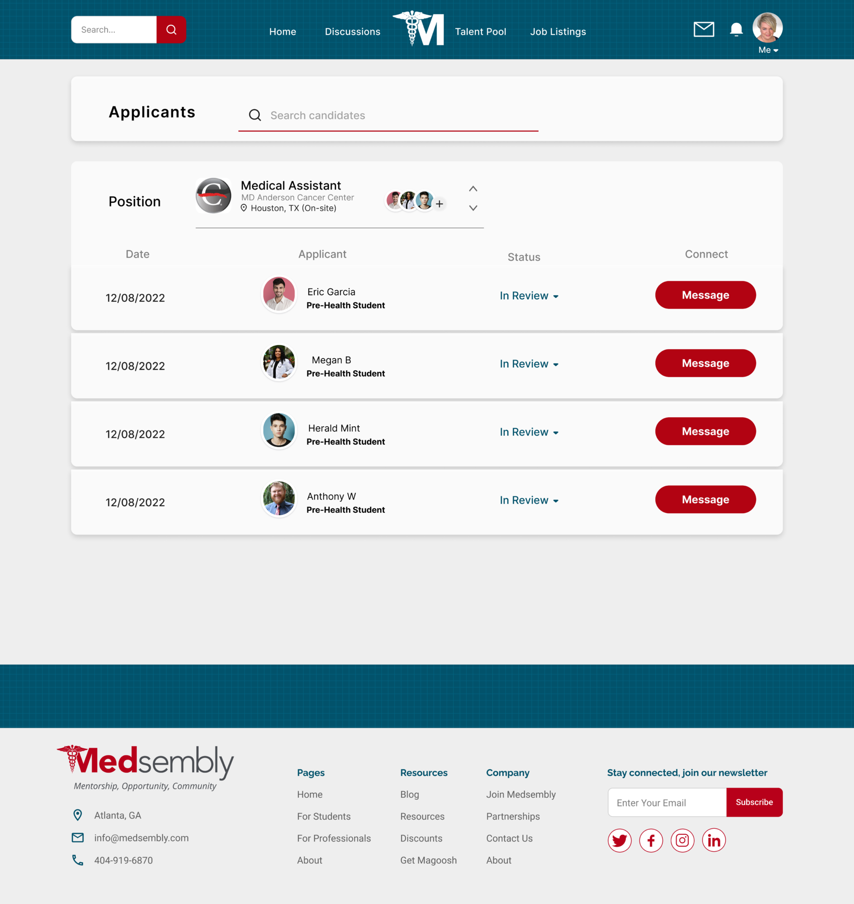 Towards the end of our 3 week sprint, we held a final client meeting and presented our two latest high fidelity prototypes, which included preference testing results. The presentation in front of the founder of Medsembly as well as our mentor and the General Assembly team was a great experience and the end result was well received. It was important for the client that we first make the site parity with the application, while focusing on the experience of using the website by the mentor and recruiter, and our team was able to complete this in a short time. In the future, if we were to work with Medsembly again, we would like to work on path improvement for mentee, events page, news feed, and delve into settings and deeper navigation.